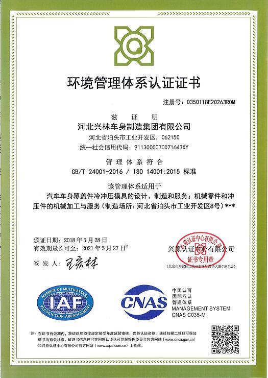 在公司領(lǐng)導(dǎo)大力支持、各部門員工的不懈努力下,經(jīng)過(guò)認(rèn)證公司專家的全面、嚴(yán)格,細(xì)致的指導(dǎo)和審核,確認(rèn)我公司環(huán)境管理體系符合ISO14001:2015的標(biāo)準(zhǔn)要求,并于2018年5月28日,向我公司正式頒發(fā)過(guò)ISO14001:2015環(huán)境管理體系認(rèn)證。ISO14001是ISO14000系列標(biāo)準(zhǔn)的龍頭標(biāo)準(zhǔn)。這個(gè)標(biāo)準(zhǔn)的核心是規(guī)定了環(huán)境管理體系的要素(共五個(gè)部分,17個(gè)要素),也就是說(shuō)對(duì)環(huán)境管理體系提出規(guī)范性要求,一切組織的環(huán)境管理體系必須遵照本標(biāo)準(zhǔn)的要素、規(guī)定和模式。