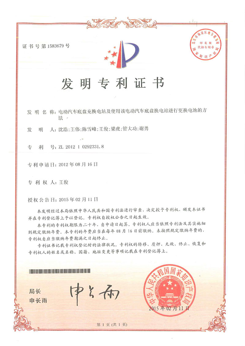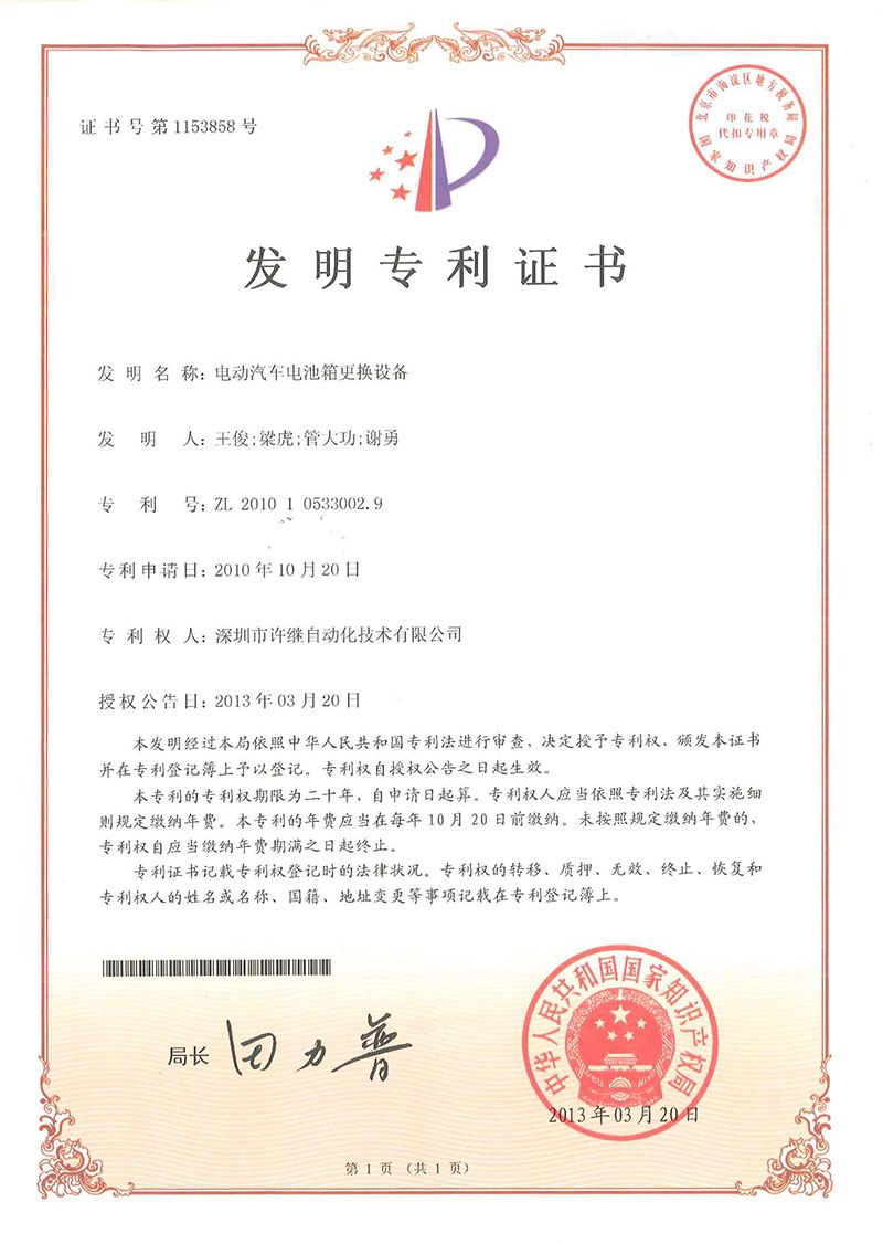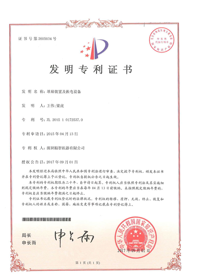 • 換電設(shè)備-專利證書