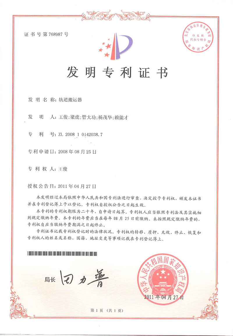 • 軌道搬運(yùn)器-發(fā)明證書